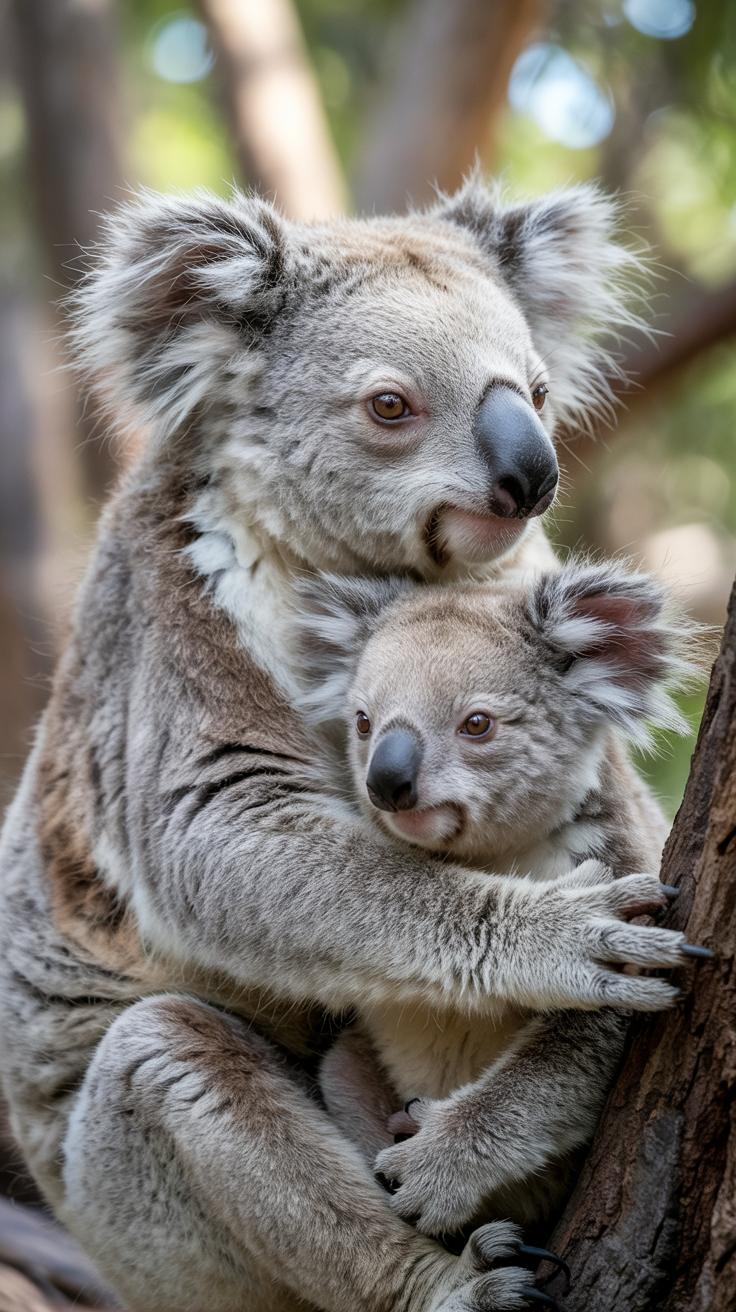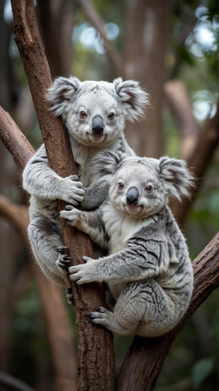 In the lush eucalyptus forests, baby koalas exhibit enchanting social behaviors that revolve around bonding and communication. These young koalas often engage in gentle vocalizations, including soft grunts and squeaks, to express their needs and emotions. Their mother’s attentive responses foster a sense of security and connection, essential for the baby’s development. Cuddling is a fundamental aspect of their interactions; as they cling to their mothers, they both share warmth and reinforce their bond. Such nurturing moments not only strengthen familial ties but also teach the little ones vital social cues.