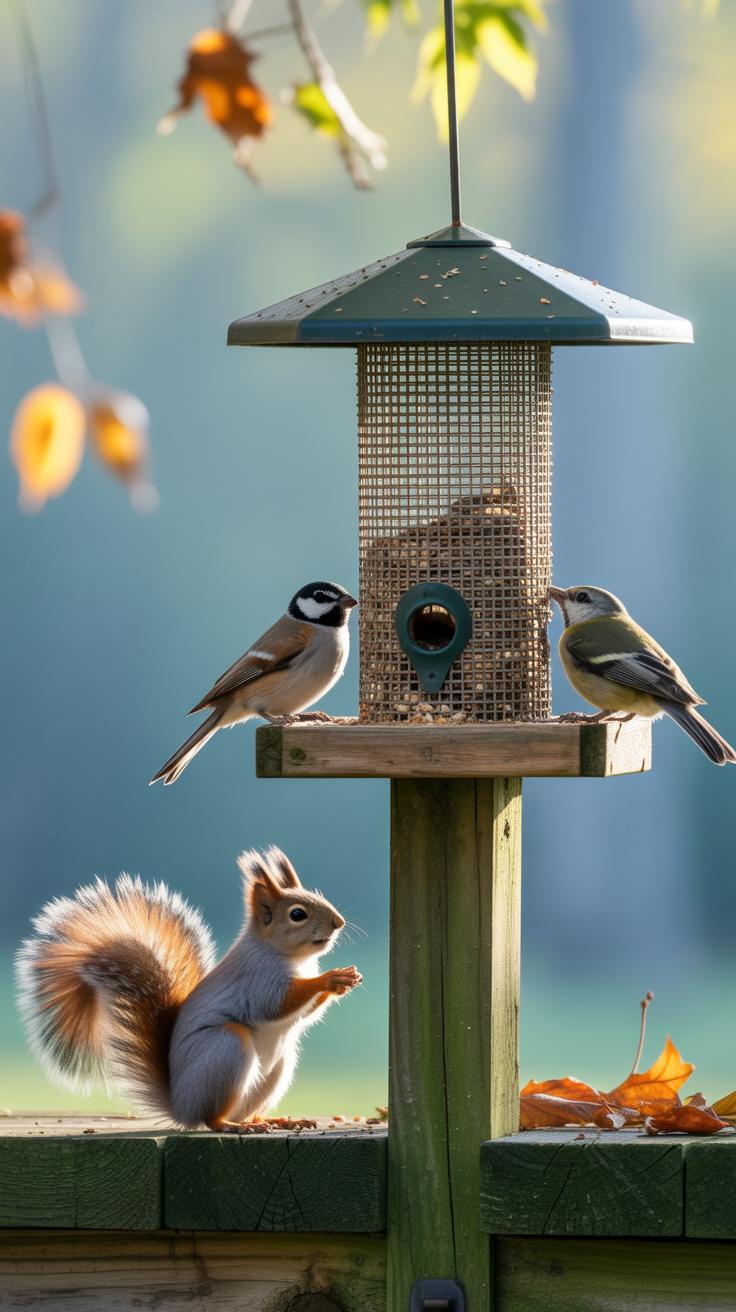 Weight-sensitive feeders react to the weight of the visitor; when a squirrel hops on, the feeding ports close, denying access. These are quite clever and often quiet, letting smaller birds feed without much interruption. Then there are metal cages surrounding the seed ports. The cage gaps are just right for tiny birds but too small for squirrels or large starlings. These cages can feel a bit like overkill, but they do work if the squirrel problem is persistent.