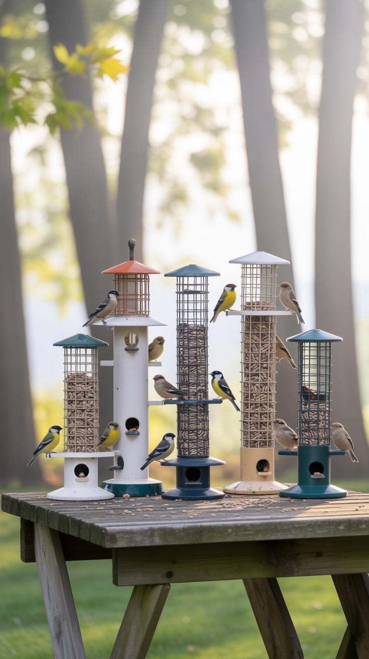 On the other hand, hummingbird feeders have a unique design, often featuring small feeding ports or red accents to attract hummingbirds. These feeders use liquid nectar instead of seeds, tapping into the birds’ preference for sweet, energy-rich food. Each type has distinct features based on the needs and habits of the birds it attracts, so choosing one depends on what species you want to welcome and how you want to watch them.