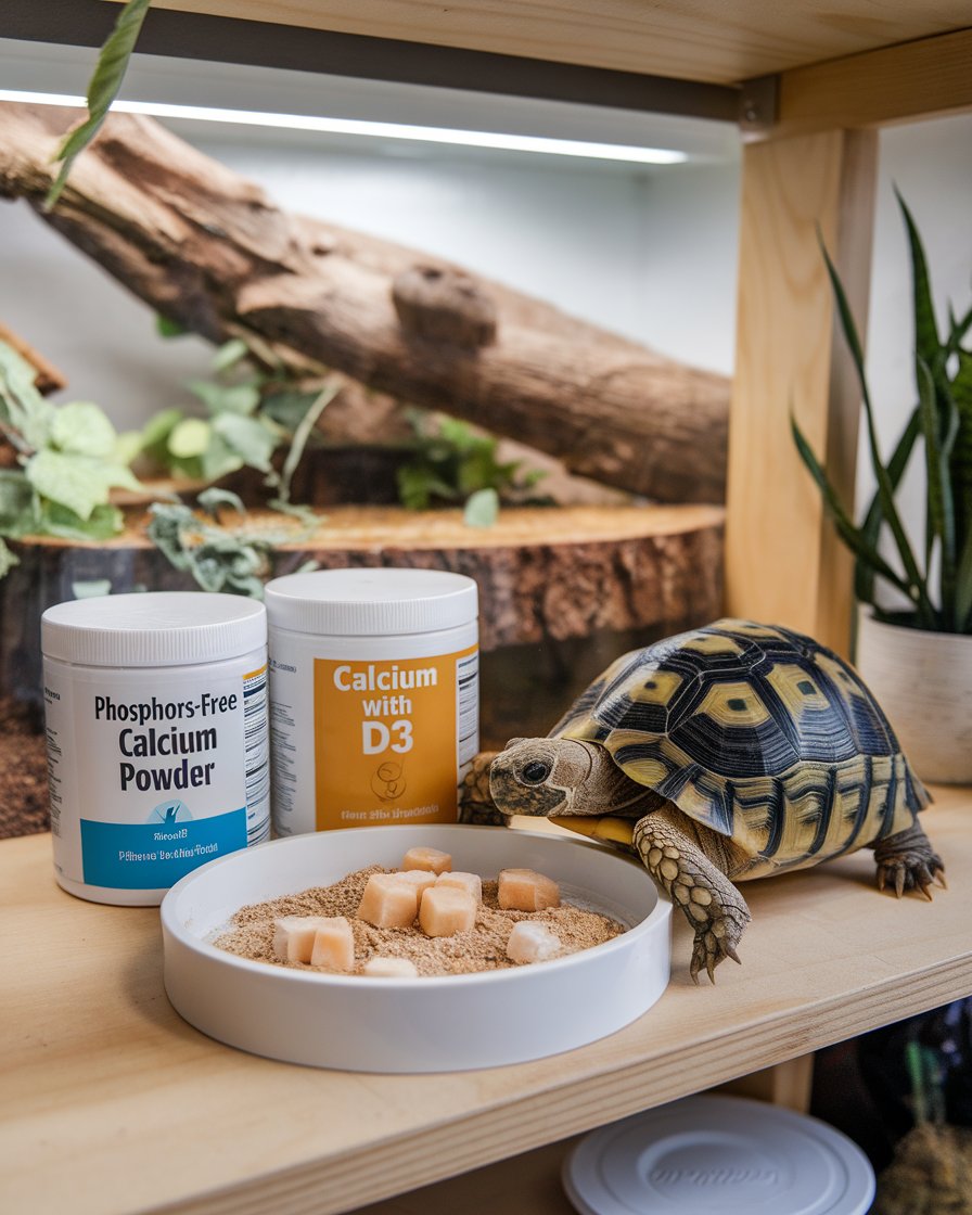 Making sure your tortoise gets the right calcium and Vitamin D3 supplements is a big deal for their overall health. Tortoises, especially those living indoors or in a spot with limited sunlight, need calcium with D3 to keep their bones strong and prevent things like metabolic bone disease. You can easily find calcium supplements in pet stores, such as ultra-fine calcium powders, that are perfect for sprinkling on your tortoise’s food. This makes sure they get the right nutrients to stay healthy and keep their shell strong. Don’t forget regular vitamin supplements play a huge role in keeping your tortoise’s bones and overall body in check.