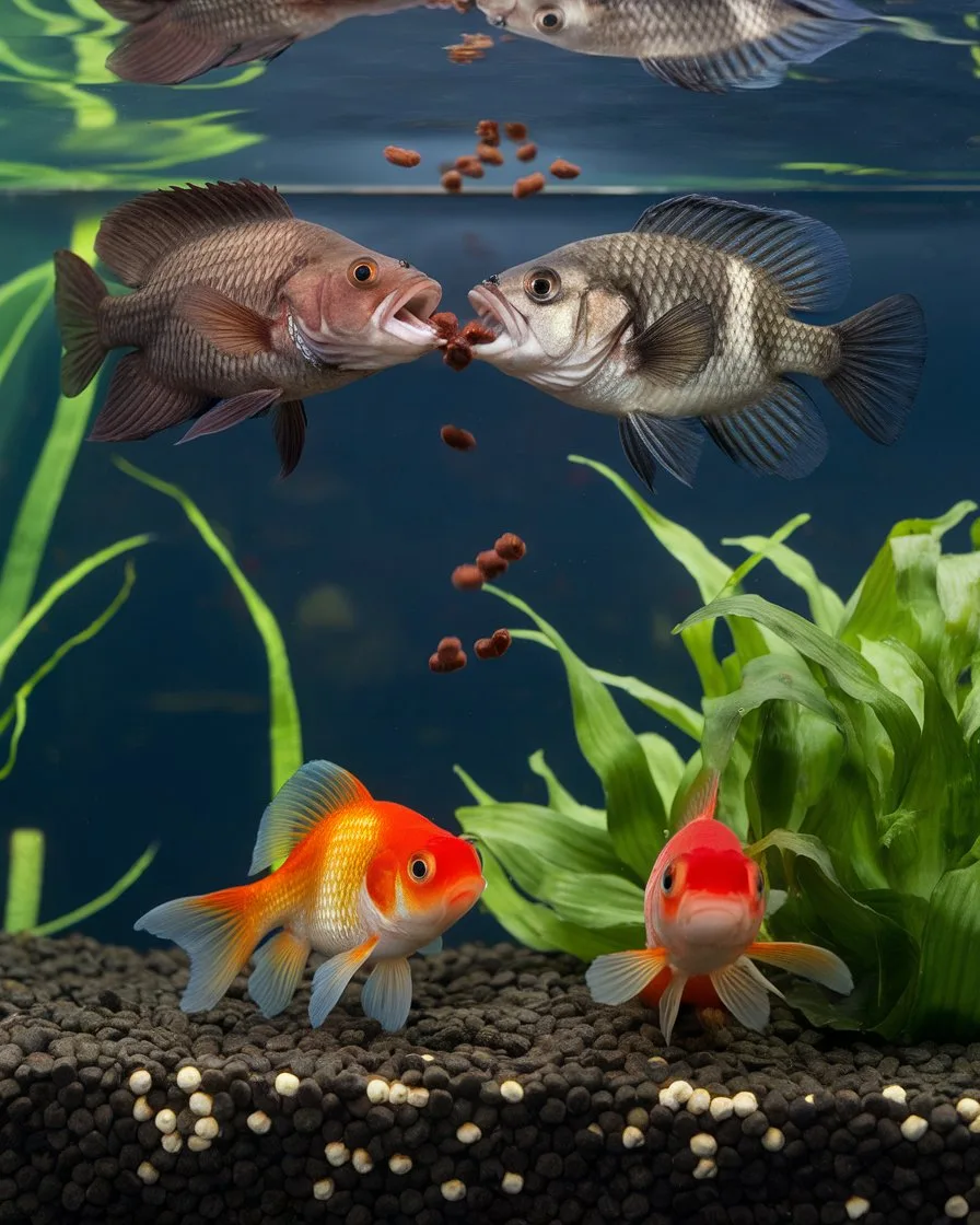 3. Different Dietary Requirements Cichlids are primarily carnivorous, thriving on a high-protein diet, while goldfish are omnivores that require a mix of plant-based and protein-rich food. Feeding both in the same environment could lead to nutritional imbalances or competition for food, which would be detrimental to their health.