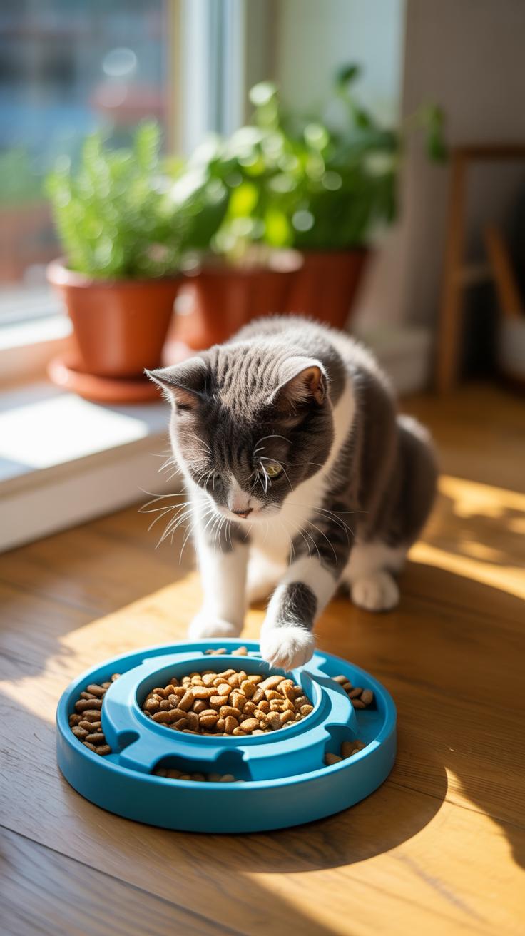 Puzzle feeders make mealtime into an interactive challenge—this not only slows down eating but encourages problem-solving. Then there are battery-operated toys that move on their own; some cats enjoy them, but others find them unpredictable or even scary. Your cat’s personality makes all the difference here.