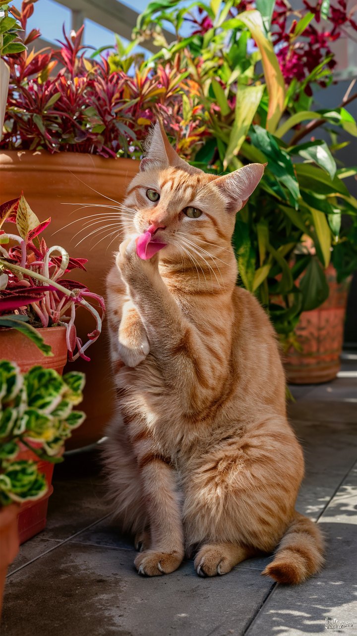 Cats that sit upright while grooming are not only focusing on cleanliness but also ensuring their safety. This position allows them to keep an eye on their environment, ready to react if disturbed. For indoor cats, this behavior might be less about threat detection and more about comfort and habit, reflecting their natural instinct to remain alert even in safe environments.