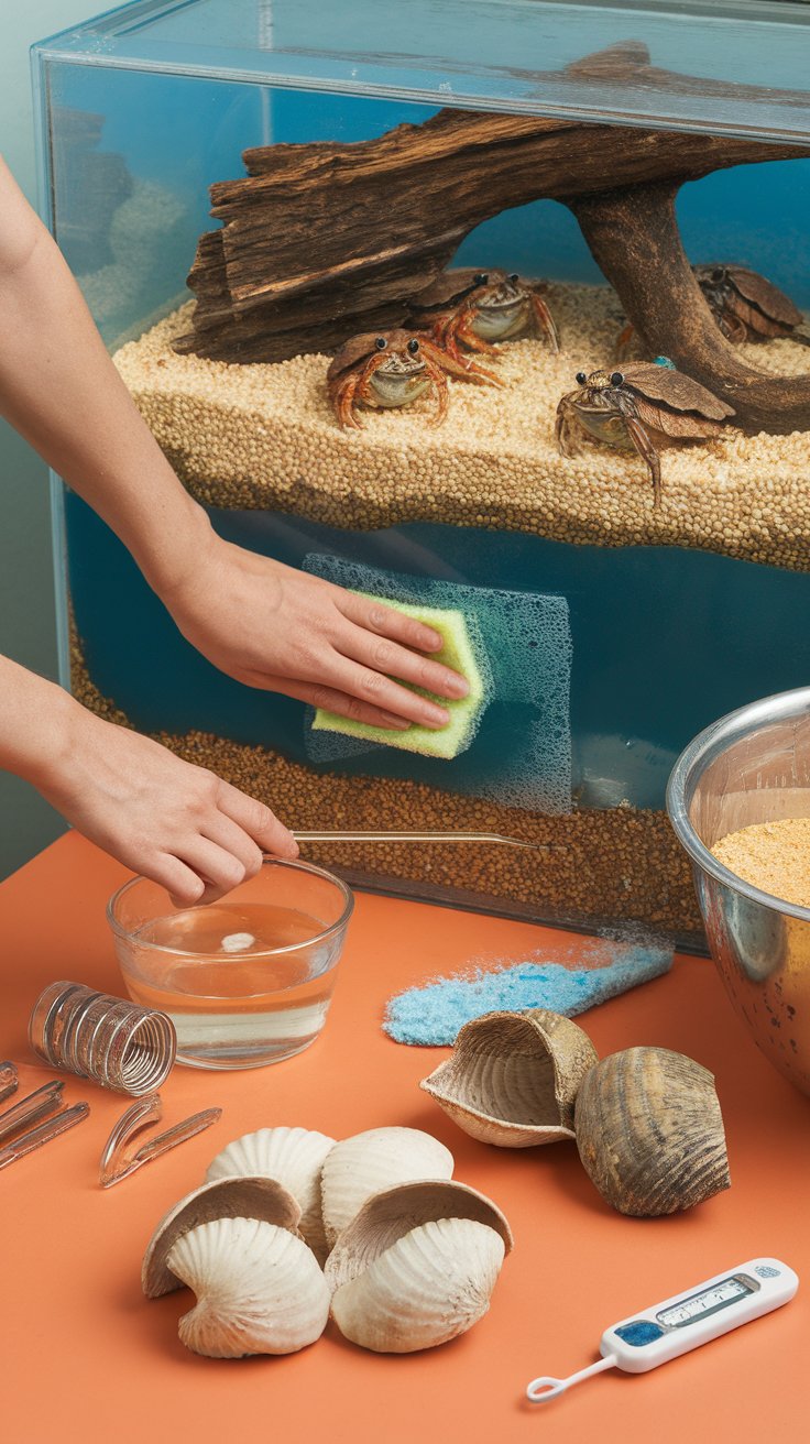 Maintaining a clean and safe environment for your hermit crabs is essential for their health and happiness. Regular cleaning routines not only prevent the buildup of harmful bacteria and mold but also support natural behaviors like molting and exploring. By following systematic steps and using appropriate tools, you can ensure your crabs thrive in a well-maintained tank that mimics their natural habitat.