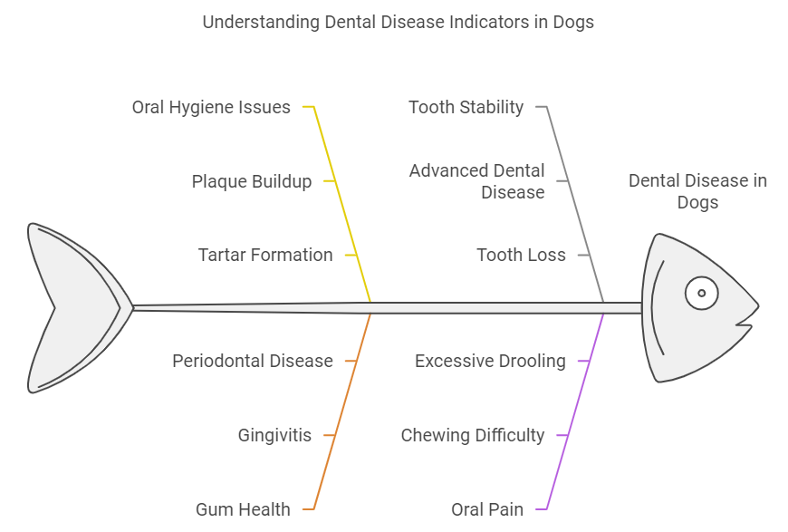 Recognizing common symptoms of dental issues in dogs is the first step toward preventive care. Symptoms such as persistent bad breath, visible plaque, or gum inflammation are often the earliest indicators. Advanced signs may include gumline recession or loose teeth, which can signify deeper periodontal issues. Monitoring your dog’s mouth for these signs and scheduling regular check-ups can catch problems before they become severe. By focusing on early detection, pet owners help prevent conditions that could lead to pain or systemic health issues, protecting their dog’s overall wellness.