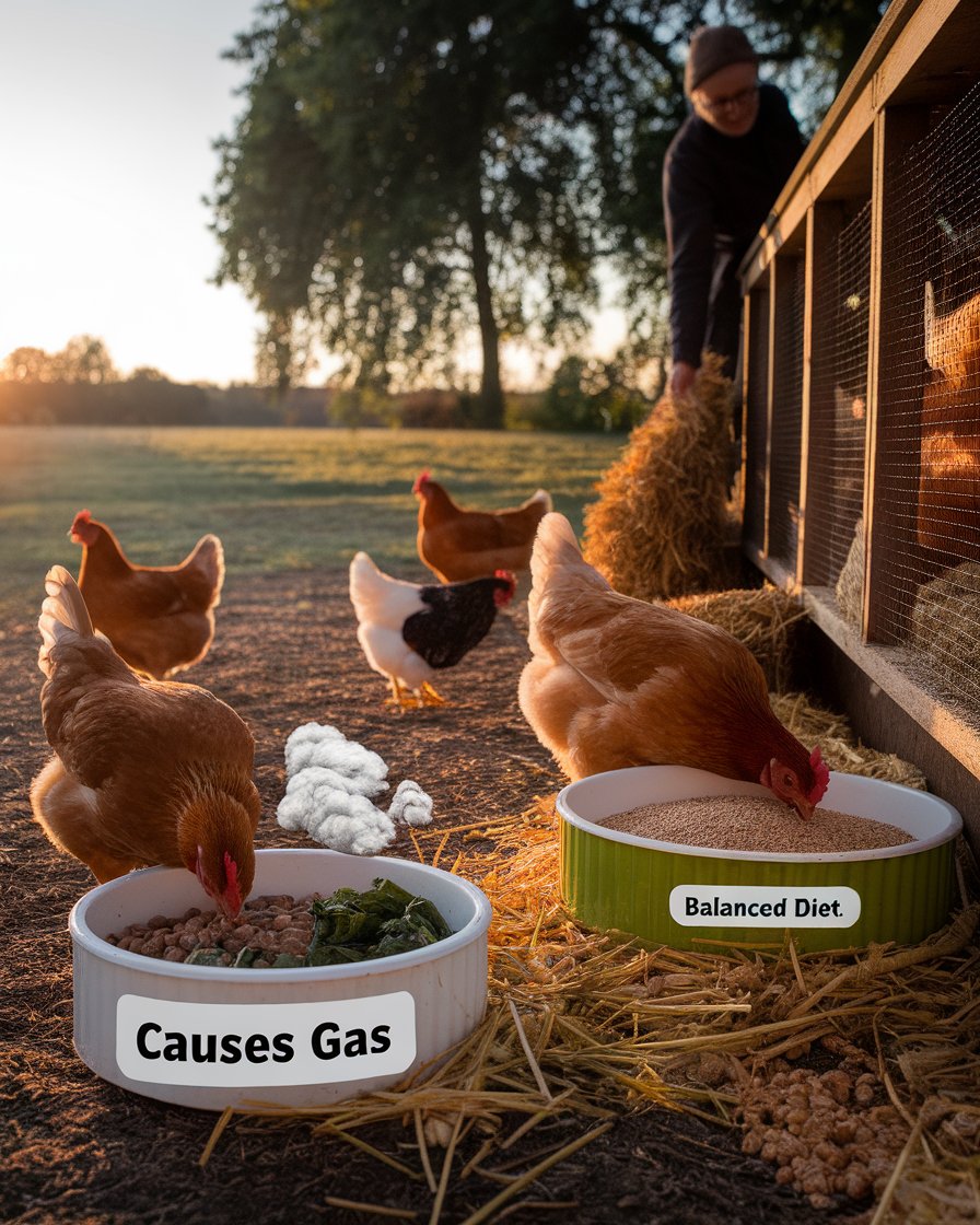 - A balanced diet helps prevent excessive gas production and ensures better digestive health for chickens.