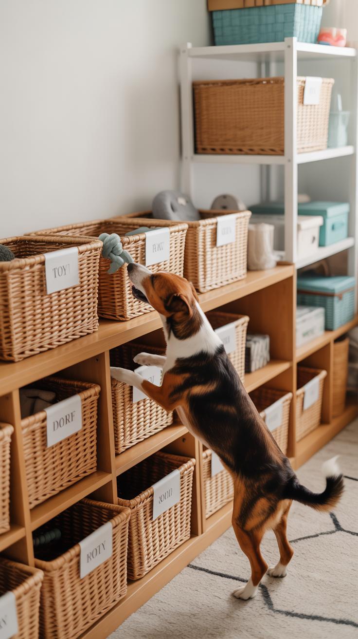 Choosing the right storage means thinking about safety and durability. Plastic bins with secure lids, wooden crates with smooth edges, or fabric baskets that won’t tip over quickly work well. Stay away from anything with sharp corners or parts that can be chewed off. I once bought a wooden box that had rough edges—my dog was pretty interested in splinters, unfortunately.