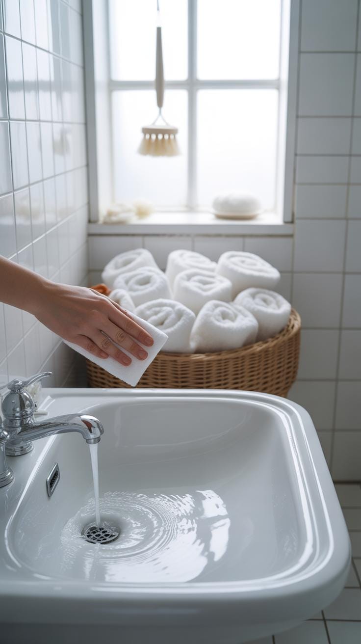 - Drain any standing water from the basin or tub immediately. Trapped water can become a breeding ground for bacteria.