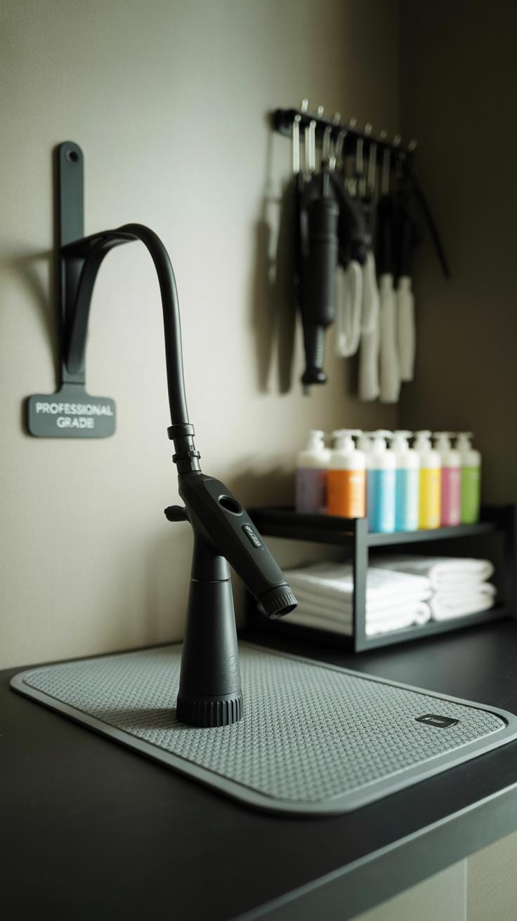 Don’t overlook the mat. A non-slip mat can keep your dog from sliding around, which is safer and generally lowers anxiety. Brushes come in all shapes: some great for loosening dirt before washing, others designed specifically for massaging shampoo into the fur without tangling. A rubber curry brush? Surprisingly effective at pulling loose hair when rinsing.