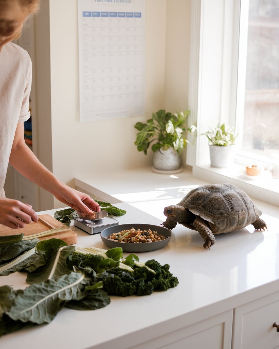 Determining the right portion size for your tortoise is equally important as the frequency of feeding. A good rule of thumb is to offer enough food to match the size of the tortoise’s shell, with an emphasis on leafy greens and other plant-based foods. A palm-sized portion of greens like cabbage or kale is ideal, ensuring a variety of plants to provide a wide range of vitamins and minerals. Avoid overfeeding, as excess food can lead to obesity, which can cause health complications. Regular weight checks can help fine-tune portion sizes, ensuring that your tortoise maintains a healthy and active lifestyle.