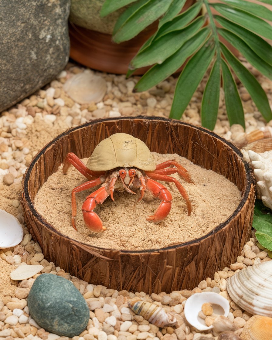 - Choosing the right substrate mix, such as play sand and coconut fiber, is essential for a natural hermit crab habitat.