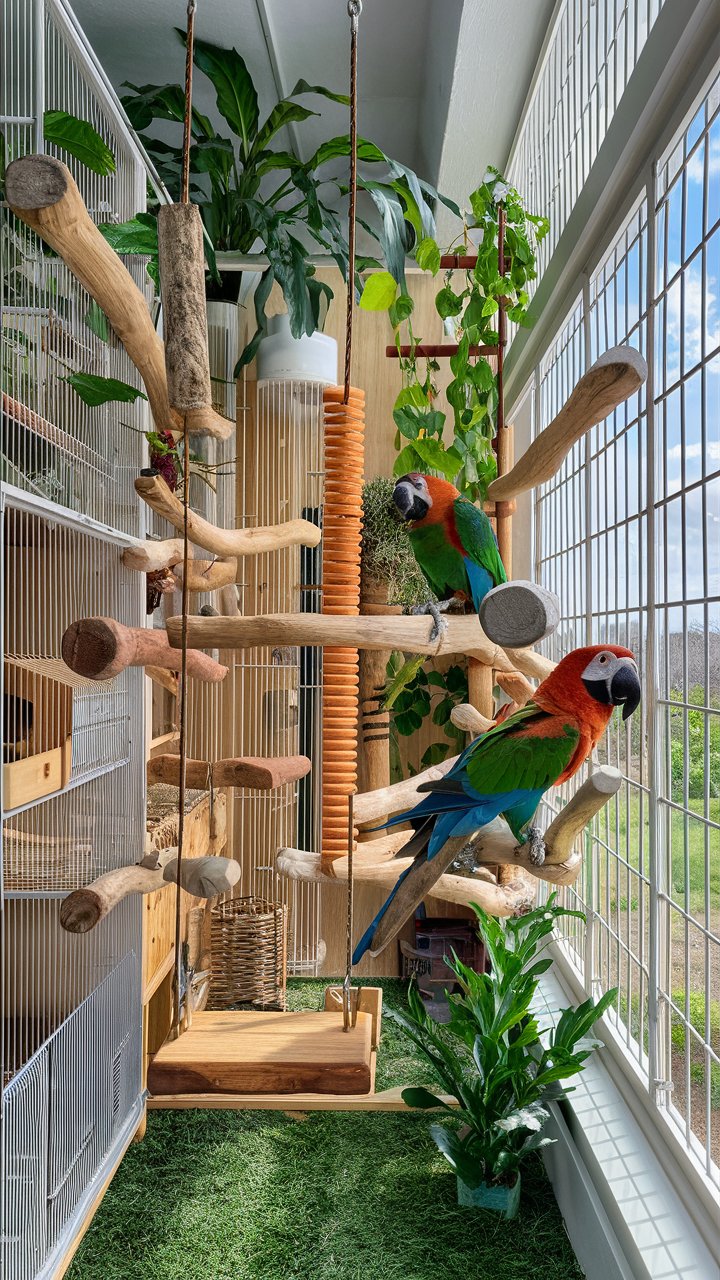- Naturalistic Decor: Use natural branches, foliage, and safe, edible plants to simulate a more natural environment, which can help in reducing anxiety and enhancing the overall well-being of the parrot.