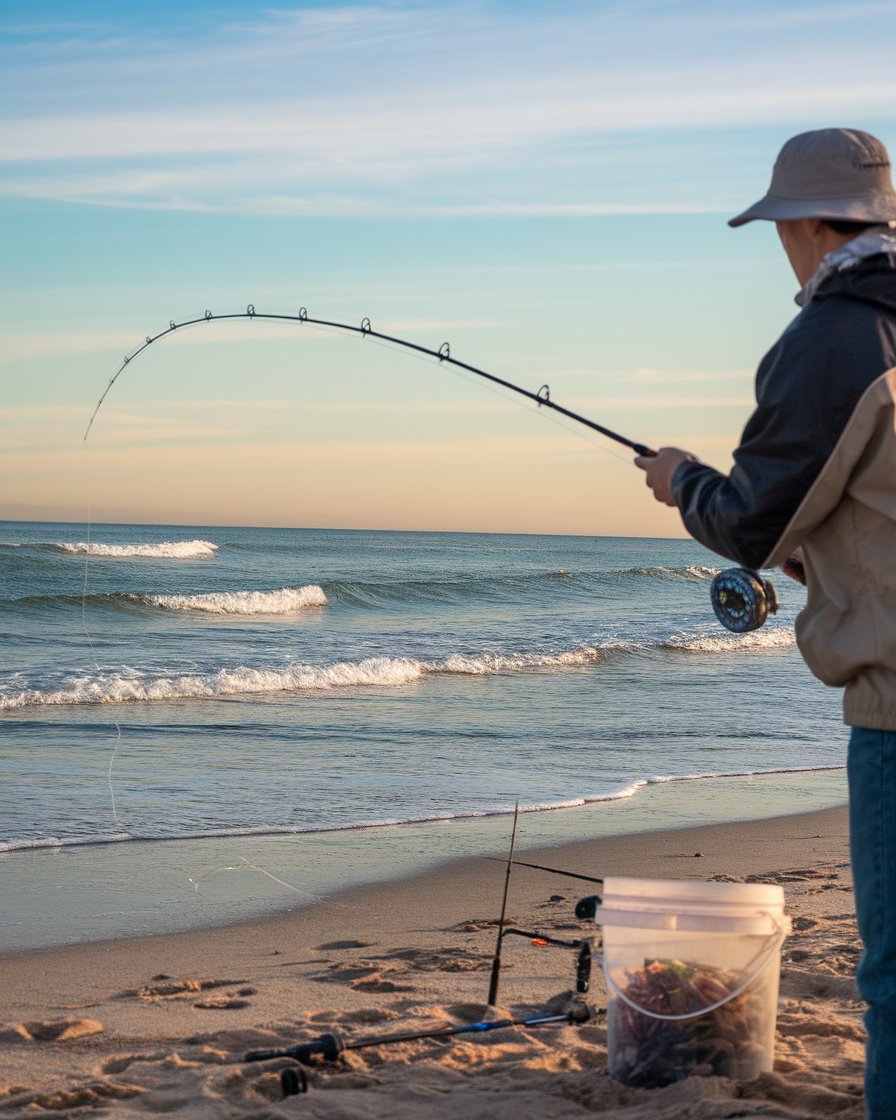 Choosing the right hooks, sinkers, and fishing gear is essential for a successful surf fishing trip with sand fleas.
