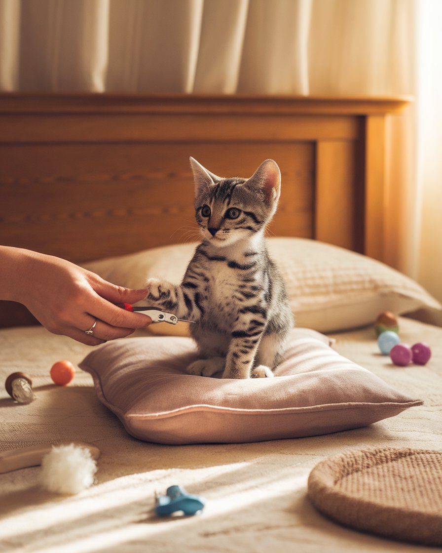 Trimming your kitten’s claws prevents overgrowth, reduces accidental scratching, and keeps their paws healthy, especially for indoor cats.