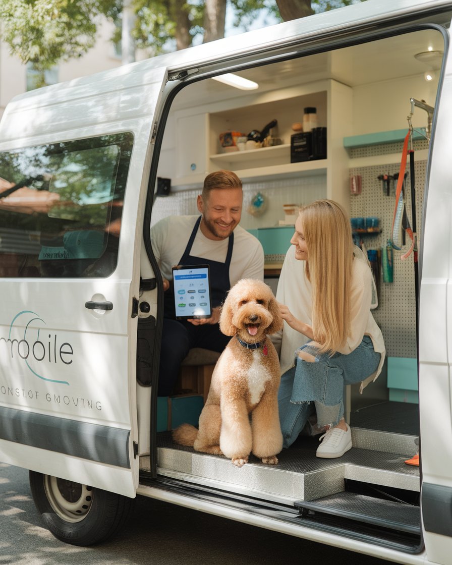 - Busy pet owners benefit from mobile grooming vans, which save time and eliminate the need for travel to traditional grooming salons.