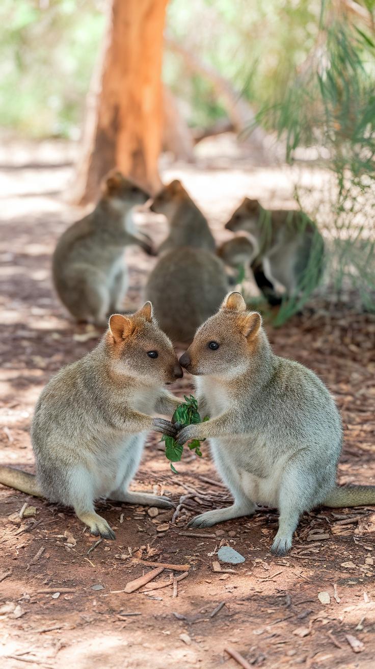 Quokkas display unique feeding habits that reveal their adaptability in a variety of environments. Grazing in small circles, they share food resources, which fosters cooperation within their groups. This behavior not only enhances their ability to find nourishment but also strengthens their social connections. Quokkas have a particular affinity for certain plants, often returning to preferred feeding locations multiple times. Observing their interactions while they munch on leaves can be heartwarming, particularly as they often appear to smile, inviting a deeper emotional connection with onlookers. Their playful and inquisitive nature during these feeding times makes every encounter memorable.