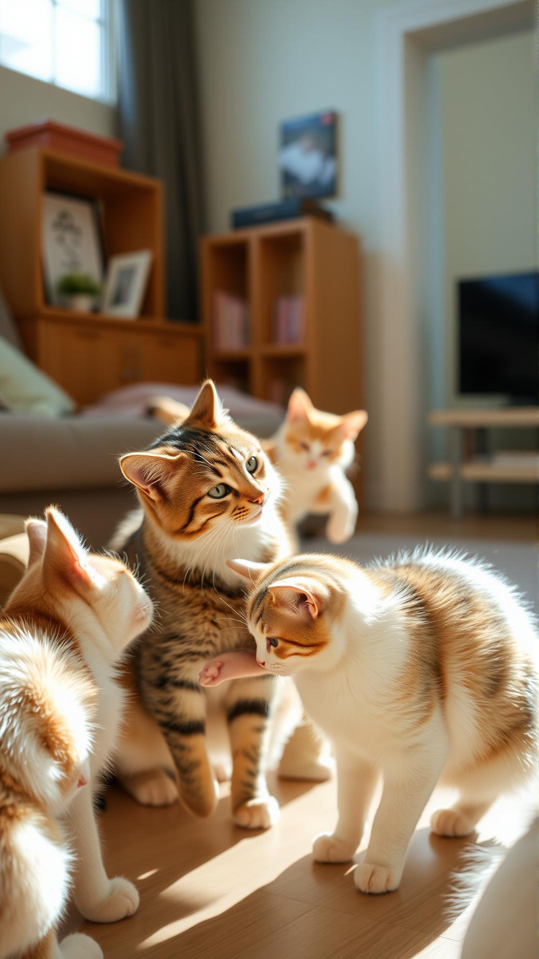 In these households, it is common to witness a delightful mix of playful antics and territorial disputes. Cats often engage in a range of activities, from grooming one another—a gesture known as allogrooming, which helps to strengthen their social bonds—to engaging in playful chases that mimic hunting behavior. These playful interactions can lead to both amusing and silly moments, contributing to a lively atmosphere and reinforcing social ties among the felines.