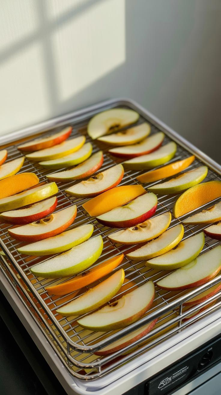 • Set the dehydrator to around 135°F (57°C). This temperature keeps nutrients more intact and avoids burning.