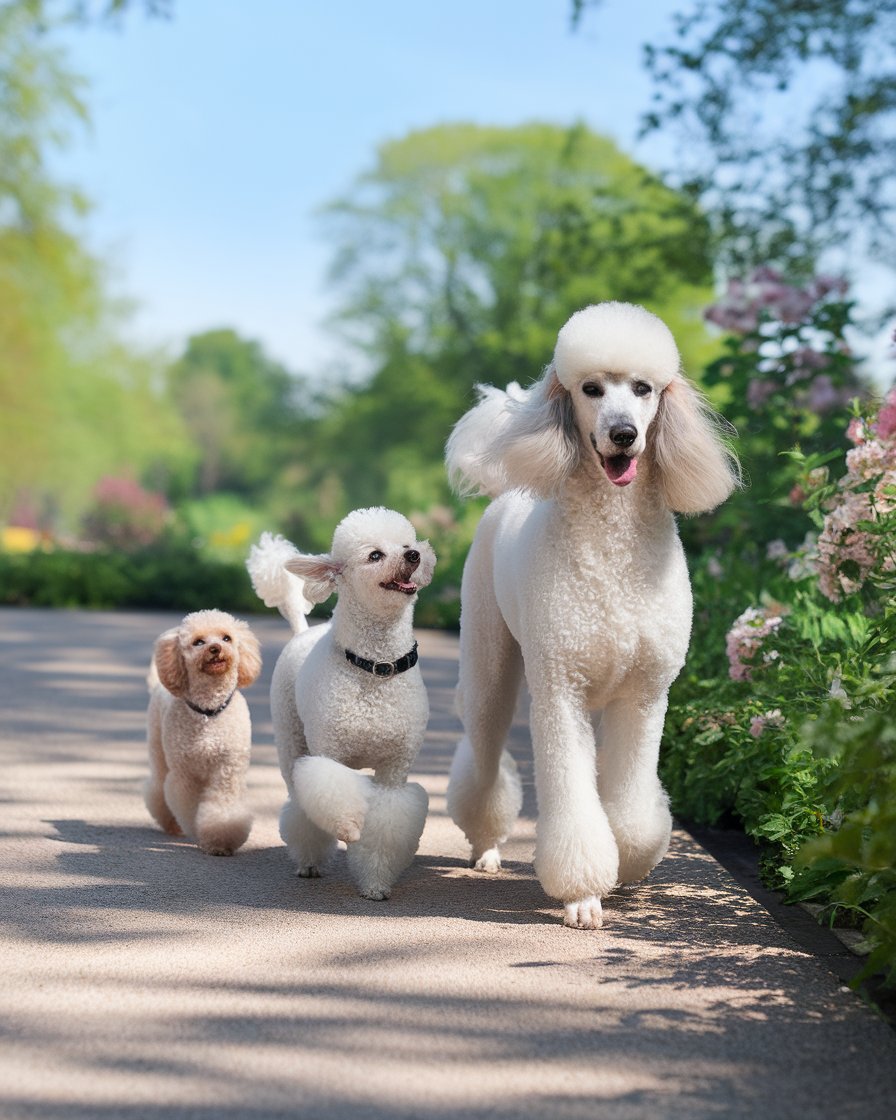 1. Poodles come in three sizes—Standard, Miniature, and Teacup—each recognized for their unique traits and versatility.