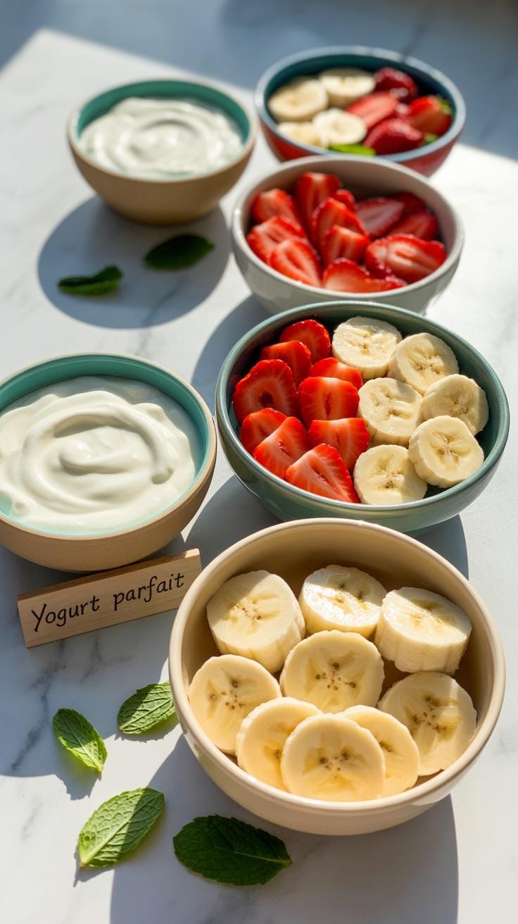 Next, pour your yogurt into a mixing bowl. Add the mashed banana and chopped strawberries. Stir gently to combine everything, but try not to overmix. You want random bits of fruit throughout, not a uniform paste. The texture matters.