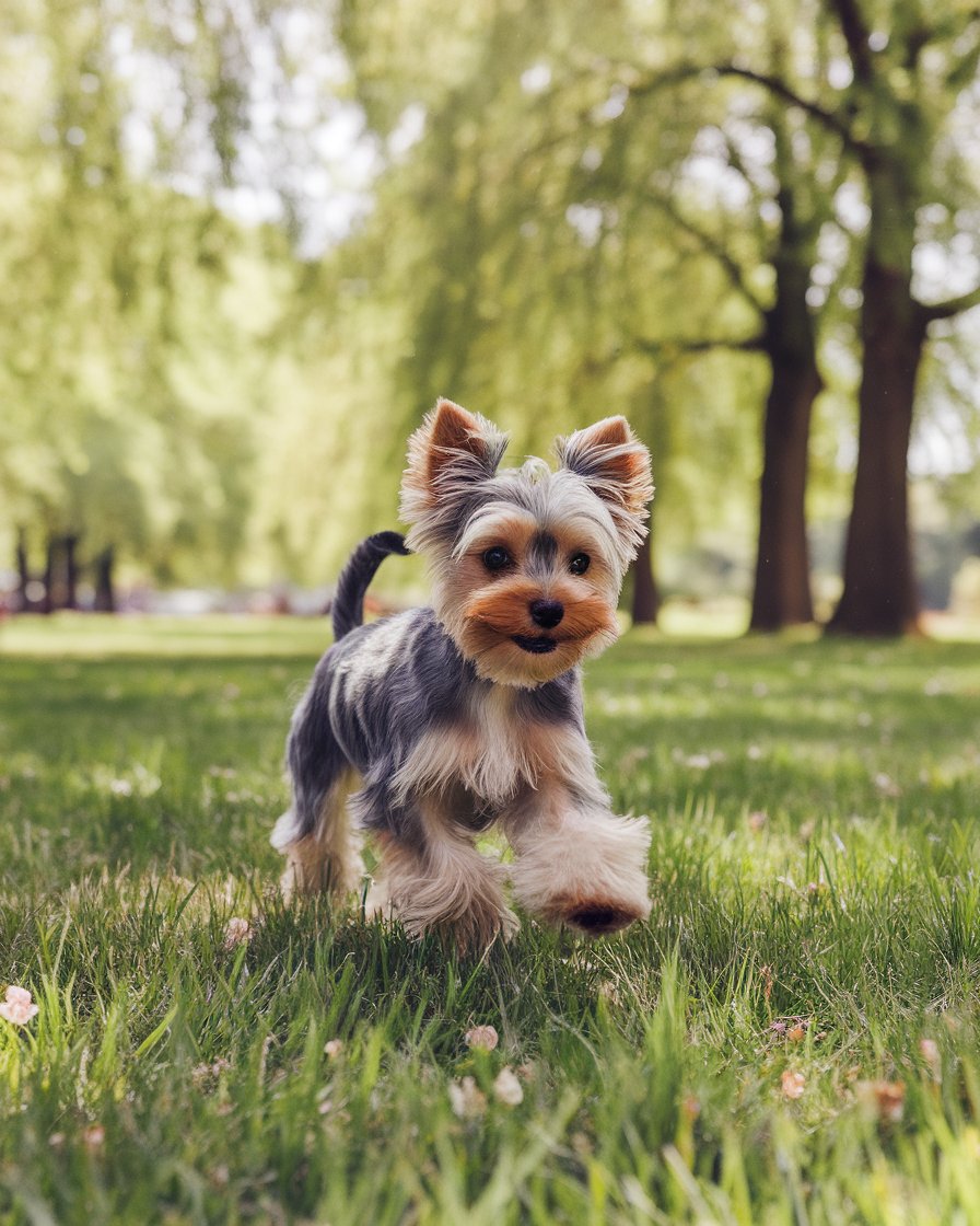Yorkie grooming requires daily brushing to ensure their hair remains tangle-free and smooth. Yorkies have hair that grows continuously, and it can easily form mats if not brushed regularly. Using a brush that’s gentle on their sensitive skin is key to keeping their coat in top shape. The teddy bear yorkie haircut, for example, needs consistent care to maintain its fluffy and cuddly look. Regular grooming helps avoid any tangles or mats, ensuring your yorkie stays comfortable and looking great.